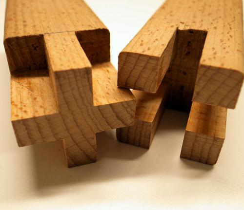 傳統(tǒng)榫卯結(jié)構(gòu)技術(shù)要求:榫頭厚度小于榫眼寬度0.1-0.2mm,當(dāng)榫頭厚度大于榫眼寬度時(shí)由于擠壓引起膠液流失從而降低膠合強(qiáng)度,裝配時(shí)也容易使榫眼開裂。榫頭寬度比榫眼長度大0.5-1mm,硬材為0.5mm,軟材為1mm。榫頭長度比榫眼深度小2-3mm并大于榫眼零件厚度的一半。直角榫頭的厚度:單榫接近于方才厚度的0.4-0.5,雙榫的總厚度也需接近此數(shù)值。