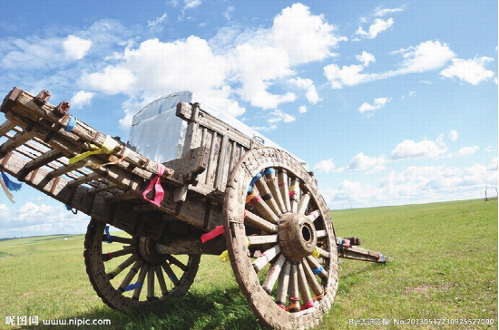 蒙古族牧民常用的一種木制大輪車。多用樺木或柳木制做。車輪高約1米,車身重約百斤,可載重300—450公斤,日行約30余公里。每車用一頭牛來(lái)拉,一人可駕馭數(shù)輛,適于在草原、沙漠、雪地等行走。亦可將數(shù)十輛勒勒車首尾相接形成近百米長(zhǎng)的車隊(duì),十分壯觀,也形成了草原上特有的風(fēng)情?,F(xiàn)在已多被膠皮鐵輪的軸承車所替代。另外還有一種“蒙古轎車”,是一種在勒勒車基礎(chǔ)上經(jīng)過(guò)改造專門乘人的車。其與勒勒車不同之處在于車體上有用柳條子彎曲后扎成的車棚,棚子的外面用毛氈包圍,形成一個(gè)既擋陽(yáng)光,又擋風(fēng)雨,防曬御寒的帳篷。