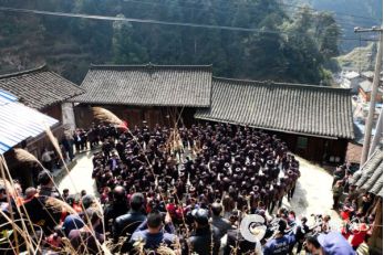 貴州省榕江縣三寶侗寨舉行“薩瑪節(jié)”民間祭薩儀式。當(dāng)天,數(shù)千名侗族同胞歡聚一堂,通過祭薩、舞稻草龍、稻草人行乞、唱耶歌、跳耶舞等活動歡度“薩瑪節(jié)”。