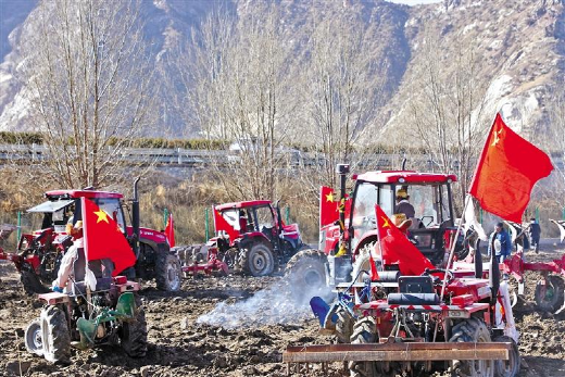 “現(xiàn)在國家大力支持農(nóng)業(yè)發(fā)展,不斷推進(jìn)農(nóng)業(yè)機(jī)械化,我們不僅不用自己耕地,而且效率和產(chǎn)量都提高了很多,我們家富余的勞動力外出就業(yè),一家人的生活也越過越好啦。”協(xié)榮村村民索朗曲培說。