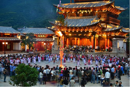 劍川的火把節(jié),還是增進(jìn)親友情誼的一個(gè)紅火節(jié)日。到燃燒著的火把樹下玩,烤著火把節(jié)的火,在火光中歡樂談笑,平時(shí)見面只打招呼的人喝酒碰杯,說句貼心的話,情誼一下子就升華了。
