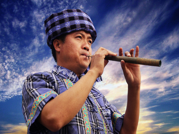 布依族民間樂器包括管樂、弦樂和打擊樂三種。管樂主要有嗩吶、簫、笛,以及布依族民間獨有的勒尤、勒朗、勒拱、姊妹簫等。嗩吶是布依族民間最常見也是最受歡迎的樂器;笛、簫等管樂主要用于“八音坐唱”(“八音坐唱”又叫“布依八音”,演出隊伍8—14人不等,所唱生、旦、凈、末、丑諸戲曲,不化妝,因用牛腿骨、竹筒琴、直簫、月琴、三弦、芒鑼、葫蘆、短笛8種樂器合奏而得名。),與其他樂器一起合奏;姊妹簫是一種簧管樂器;勒尤和勒朗也是布依族使用的雙管類樂器;勒拱又稱“筆管”,是一種單簧吹管樂器。弦樂樂器主要有二胡和月琴。二胡最為普遍,可以獨奏,演奏場合不定,其演奏的多是布依族民歌調(diào);月琴也是布依族青年喜愛的樂器之一,但不十分普遍,很少用于獨奏,主要作為“八音”樂隊的合奏樂器。打擊樂主要有銅鼓、牛皮鼓、鑼(包括大鑼和小鑼)、釵、鐃鈸等。銅鼓是布依族一種古老的打擊樂器,通體用銅鑄成,呈圓墩形;牛皮鼓、鑼、釵既可用于喜慶的場合,也可用于莊嚴肅穆的儀式,沒有固定的曲調(diào),主要作為嗩吶的配樂樂器。