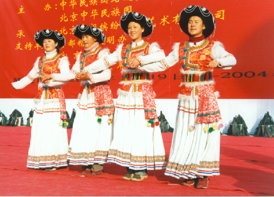 普米族的民歌音樂曲調(diào)主要有呀哈巴拉、阿遼遼、那布升洛等。呀哈巴拉,是一種較古老的民間曲調(diào),旋律悠長委婉、節(jié)奏自由,高區(qū)一般用假聲唱,開頭常用一個弱起引子作為補(bǔ)充樂句,旋律從低音樂向高音區(qū)行進(jìn),末尾又回到原來的起音上,前后呼應(yīng)。阿遼遼,這種曲調(diào)一般不帶引子,而是以一個較高的主音作為開頭,一開始就給人以熱情奔放的感覺。阿遼遼一般用以唱情歌、山歌等抒情的民歌。那布升洛,是人們對歌時常用的曲調(diào),有鮮明的節(jié)奏規(guī)范,由一問一答上下關(guān)聯(lián)的兩句構(gòu)成。在聲樂方面,可以分為民歌(含情歌)、哭腔、禮儀和祭祀四個部分。其中民歌又可以分為山歌、老年凋、出門凋、獵歌、生活(生產(chǎn))凋、敬老歌、牧歌等;哭腔屬于發(fā)自內(nèi)心的聲音,不受節(jié)奏和音高的約束;禮儀歌則在特定的禮節(jié)和禮儀中才可以吟唱,因此流行面較窄;祭祀歌主要由原始宗教音樂為主要成分,內(nèi)容豐富且風(fēng)格各異,主要有拜龍凋、祭山神等。