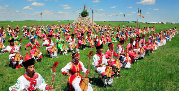 在郭爾羅斯,早期的馬頭琴主要擔(dān)當(dāng)史詩說唱及民歌的伴奏,一首民歌就是一支馬頭琴曲,人聲起便可琴聲合, 尤其是同蒙古民族的“烏爾圖道”(即長調(diào)民歌)相結(jié)合,更具草原文化的韻味。