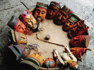 現(xiàn)在的16具面具,是班主宋成權在1997年春帶著戲班子成員,從正月初一到十五,逐家逐戶跳花燈收賀錢和群眾集資共籌集資,然后由宋成權到重慶酉陽請師傅雕刻的。