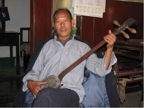 五峰南曲無專業(yè)藝人,“門第師”家傳者居多。師徒間手藝南曲兼學,親朋相教亦不少。其演唱形式以坐唱為主,一人自彈自唱,或二人一彈一唱,亦可多人一起彈唱。自制小三弦是其主要伴奏樂器,也有配以二胡、簡板的,并不拘于一格。