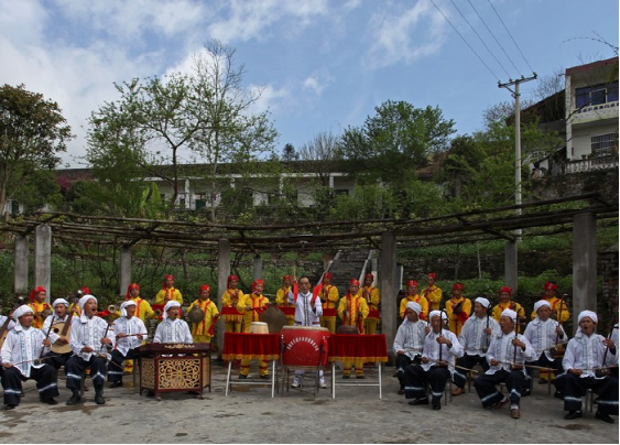 民俗性。建始絲弦鑼鼓產(chǎn)生及發(fā)展是以廣泛的民俗活動(dòng)為載體的。因?yàn)楠?dú)特的演出形式,其樂隊(duì)配置可大可小,小到5人的基本配置,大到幾十人的鑼鼓喧天。既可登大雅之堂,又可進(jìn)入千家萬戶;既可坐著表演,又可在行進(jìn)中演出。它既是表演藝術(shù),又可以和紅白喜事渾然一體,成為紅白喜事活動(dòng)主體不可分割的部分,所以建始絲弦鑼鼓廣泛用于福壽、生子、婚喪、嫁娶、造宅、祝壽、開業(yè)慶祝等民間民俗活動(dòng),而在不同民俗活動(dòng)中,又有著不同的使用禮儀和禁忌。