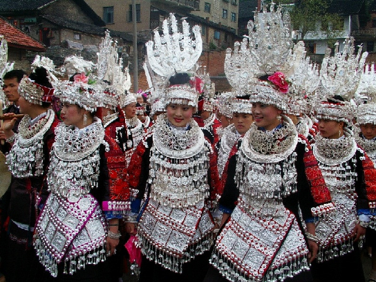 貴州施洞苗族銀飾鍛造歷史悠久,銀飾工藝精湛,工藝品主要有銀角、銀冠、銀花、銀簪、銀梳、銀插針、銀耳柱、銀耳墜、銀項(xiàng)圈、手鐲,花片和銀鈴等等。施洞的銀飾全部用純銀制作,純度達(dá)97%以上,穿戴起來顯得十分亮麗和貴重。施洞的盛裝在世上可堪稱一絕,銀飾現(xiàn)已成為裝飾品、藝術(shù)品、美的標(biāo)志、富有的象征。施洞鎮(zhèn)專門從事銀飾制作的有200余戶,所生產(chǎn)的銀飾品暢銷國內(nèi)外,成為主要的經(jīng)濟(jì)來源。