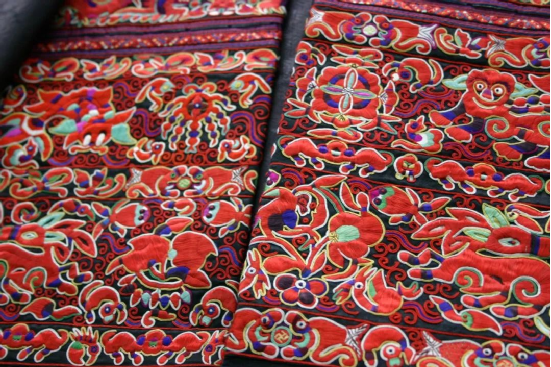 貴州臺江苗繡是苗族刺繡中最具典型意義的民間藝術(shù)品之一,一針一線,都是東方審美的極致體現(xiàn)。極為大膽的配色,夸張生動的圖案,對稱和諧的紋樣,成就了古樸精致又絢麗多彩的苗繡。每一個(gè)繡娘都有自己的見解,她們借物隨心,見山繡山,見水繡水,花樣百出,栩栩如生!