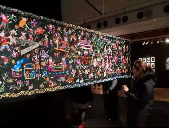 《錦繡臺江》長22米、寬0.9米,由臺江縣100余名繡娘用了一個(gè)多月時(shí)間共同繡制完成,是目前臺江苗族刺繡中最長、最精美的作品