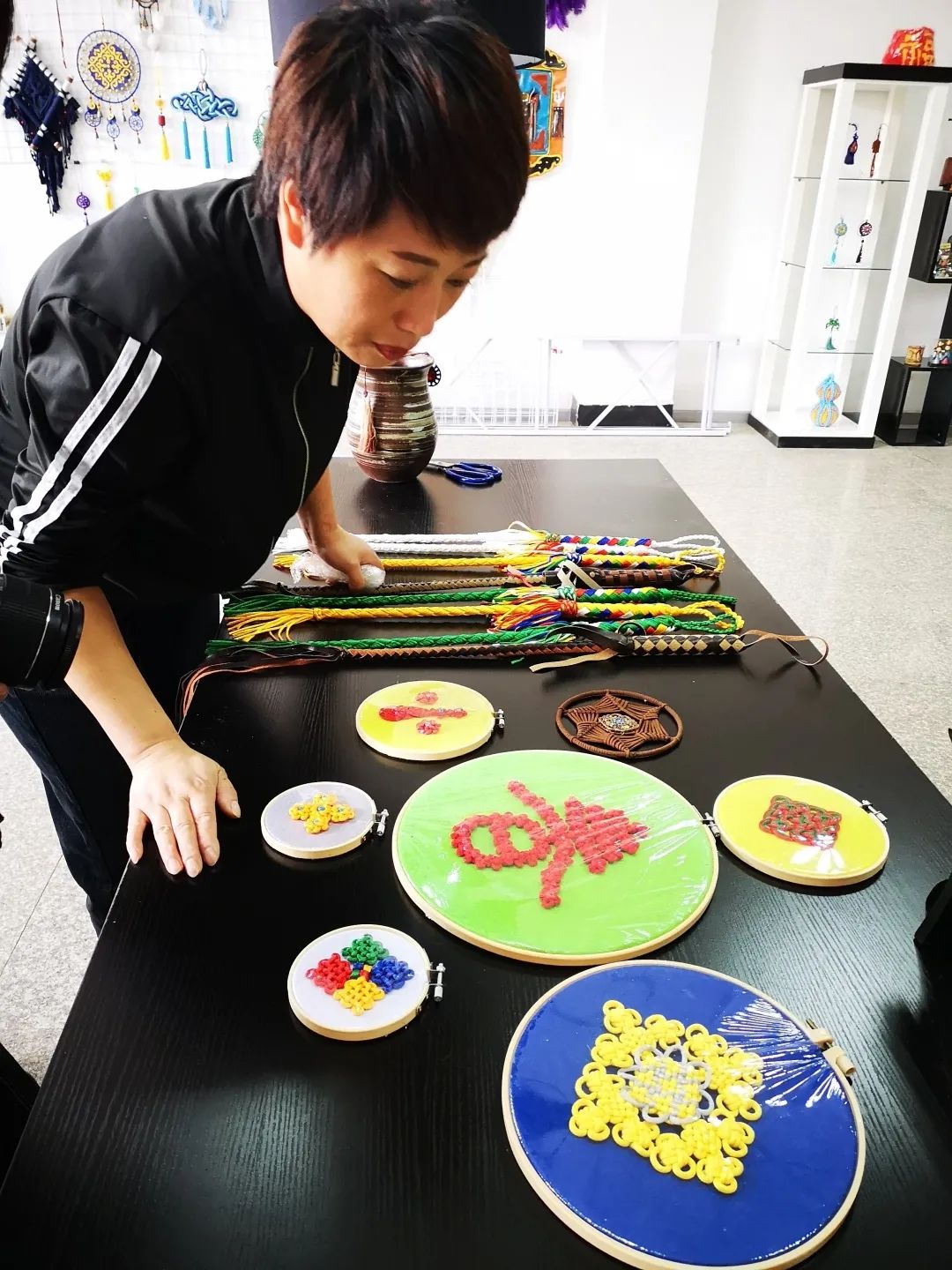 她說:繩結(jié)技藝很少人愿意學(xué),可是我從小就喜歡,不是因為我姥姥、我媽媽是繩藝傳承人,她們其實不想讓我學(xué)這門手藝,而是我從骨子里想學(xué)、想“玩”。也許這就是于云飛對這門藝術(shù)、對民族的一種情懷吧!