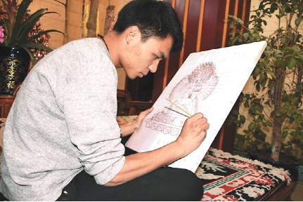 技藝上的登峰造極,次嘎把這一秘笈歸結成幾個平常的字眼:“興趣和堅持”。從小受家族文化的熏陶,兩個兒子對傳統(tǒng)文化有著濃厚的興趣。薪火相傳也成了次嘎肩上的責任。20出頭的大兒子扎西拉達穿著白T恤,皮膚白皙、手指纖長、陽光帥氣,立志要子承父業(yè)。“父親告訴我即便是要做一名手工藝人,也不能放棄對文化知識的學習,從小便把我送到內(nèi)地學習。現(xiàn)在,我長大了,該回來了。” 扎西拉達的話語堅定。