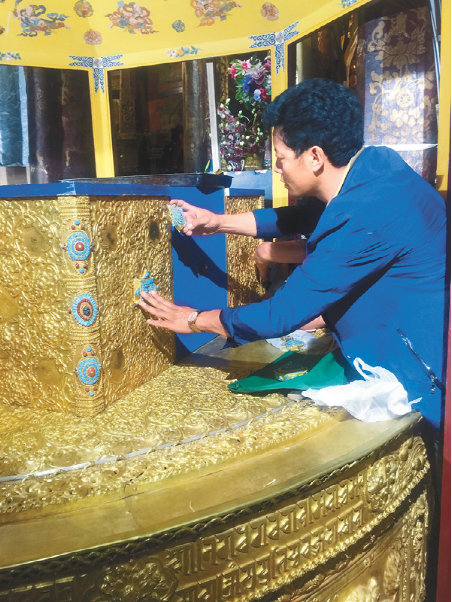 2011年,拉薩大昭寺啟動金頂維修工程。次嘎有幸成為此次維修大昭寺金頂、金屬佛像和法器等鍛鑄造任務的工藝匠人。