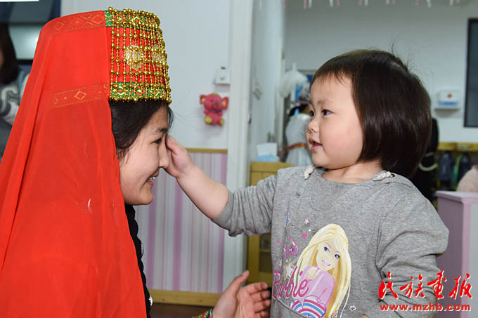 自2014年首場(chǎng)“民族風(fēng)吹進(jìn)幼兒園,愛(ài)心曲唱暖身邊人”公益活動(dòng)獲得積極反響后,幼兒園黨支部、工會(huì)、團(tuán)支部牽手園區(qū)民族團(tuán)結(jié)共建單位,走出校園、貼近社區(qū),以愛(ài)心義賣(mài)、義拍、定向捐助等方式為園區(qū)少數(shù)民族困難家庭送去關(guān)懷。在近幾年的園區(qū)民族工作實(shí)踐中,天恒名都幼兒園的“家、校、社、企”聯(lián)動(dòng)模式不斷發(fā)展創(chuàng)新,培育孵化出少數(shù)民族(幼教)實(shí)習(xí)點(diǎn)、少數(shù)民族志愿者服務(wù)隊(duì)等形式的實(shí)習(xí)模式。2013年至今,幼兒園已為上海市群益職業(yè)技術(shù)學(xué)校的“新疆班”學(xué)生210人次提供了實(shí)習(xí)崗位。