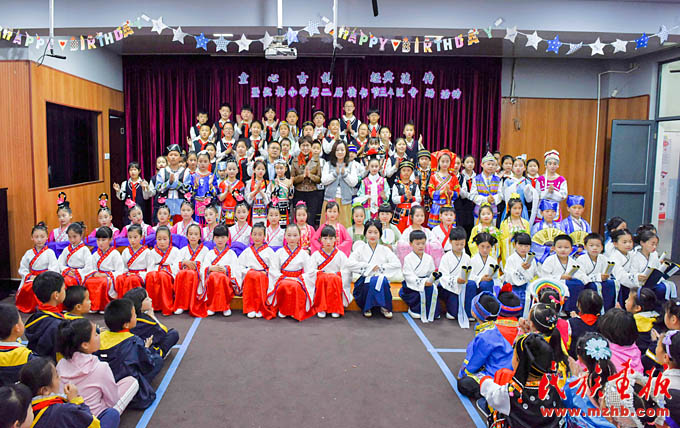 同一天下午,一場(chǎng)精彩的T臺(tái)秀在上海市閔行區(qū)梅隴鎮(zhèn)弘梅小學(xué)上演。小學(xué)生們身著民族服裝亮相,動(dòng)感的音樂(lè)、精彩的表演,將“民族團(tuán)結(jié)一家親”的理念演繹得生動(dòng)活潑。學(xué)校布置的民族文化墻上,展示了我國(guó)56個(gè)民族的風(fēng)土人情,營(yíng)造了多姿多彩的民族文化氛圍,讓民族特色文化陪伴在學(xué)生身邊。