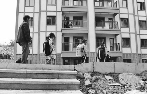 教師楊紹書和學(xué)生從新居前走過。歐東衢攝