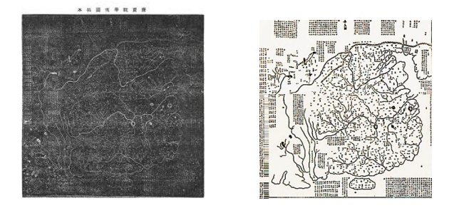 唐代地理學家賈耽采用裴秀制圖法組織畫工繪制《海內(nèi)華夷圖》,幅面約十平方丈,古今對照,雙色繪畫,注重少數(shù)民族部分,是巨幅唐代中國全圖?!哆M海內(nèi)華夷圖及古今郡國縣道四夷述表》云:“唐臣聞地以博厚載物,萬國棋布;海以委輸環(huán)外,百蠻繡錯。中夏則五服九州,殊俗則七戎六狄,普天之下,莫非王臣。” 宋代《華夷圖》被簡化成縱橫各約80厘米,刻于《禹跡圖》背面;圖上不畫方格,有山脈、河流、長城和各州的名稱,其位置大體與實際相近。山脈用人字形表示,河流為單曲線;河流名稱注記在河源處,囊括眾多異族名稱。西安碑林博物館這塊作為印刷用的兩面刻有地圖的石版,是中國現(xiàn)存最早的石版地圖。唐代巨幅彩繪《海內(nèi)華夷圖》和宋代石刻《華夷圖》不僅標志著中世紀中國制圖學上最高成就,而且是中國多民族國家的象征。
