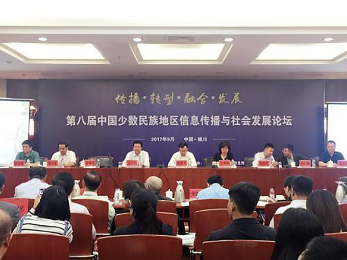 2017年9月16日,由中國(guó)少數(shù)民族地區(qū)信息傳播與社會(huì)發(fā)展論壇組委會(huì)、中國(guó)人民大學(xué)新聞傳播學(xué)院、寧夏大學(xué)新聞傳播學(xué)院聯(lián)合主辦,銀川市傳媒集團(tuán)協(xié)辦的第八屆少數(shù)民族地區(qū)信息傳播與社會(huì)發(fā)展論壇在寧夏銀川舉行。來(lái)自全國(guó)42所高校的130多名專(zhuān)家、學(xué)者齊聚銀川,圍繞少數(shù)民族地區(qū)信息傳播與社會(huì)發(fā)展問(wèn)題進(jìn)行交流研討。