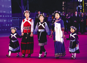納西族演員在開幕式走紅毯。 胡科攝