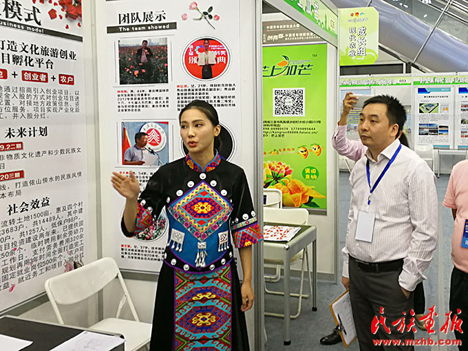 鐘億靈在“創(chuàng)青春”中國(guó)青年創(chuàng)新創(chuàng)業(yè)大賽中為嘉賓做項(xiàng)目講解。