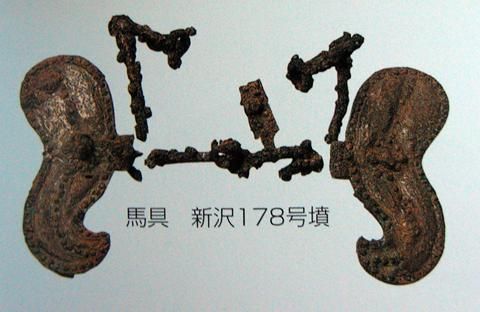 古墳時(shí)期相當(dāng)于諸侯割據(jù)狀態(tài),有許多小國(guó),所以戰(zhàn)爭(zhēng)不可避免。大和王權(quán)為了在國(guó)內(nèi)加強(qiáng)控制、大量制造了刀、槍、劍等鐵兵器,并將最新的工藝技術(shù)用于鐵鎧甲和各種馬具的制作,因此,這個(gè)時(shí)代的武器及馬具最為發(fā)達(dá)與精美(圖十三)。