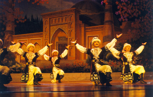 哈薩克族中無論男女老少都是能歌善舞的人,其舞蹈大多數(shù)都是反映哈薩克族人民的生活,具有濃烈的草原生活氣息。哈薩克族的舞蹈動作剛健有力、優(yōu)美動人、舒展豪放,與此同時,它也不乏中亞舞蹈風格,不僅有山的胸懷、水的溫柔,還有雄鷹的兇猛矯健、駿馬的忠誠勤勞、天鵝的優(yōu)雅神韻,當然也有突厥人的騎馬步法和蒙古人的搖身抖肩動作,其舞蹈內(nèi)容以反映牧業(yè)生產(chǎn)的居多。哈薩克族的傳統(tǒng)舞蹈主要有《擠奶舞》《剪毛舞》等,還有表現(xiàn)騎馬的《走馬舞》,表現(xiàn)狩獵的《熊舞》等。隨著我國文化藝術(shù)的日益發(fā)展和繁榮,哈薩克族新舞蹈的表現(xiàn)形式也更加豐富多彩。