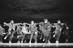 《我們看見了鴻雁》既表達(dá)了“深扎”精神對藝術(shù)創(chuàng)作的重要性,也反映了青年舞蹈工作者的精神傳承?!傍櫻恪笔邱{鶴歸去的賈作光,也是活在當(dāng)下城市中的青年人。他們雖然不穿蒙古袍、不踩蒙古靴,但他們的心靈深受民族文化的熏陶,印刻著永不褪色的文化記憶。他們走在新時(shí)代遼闊的天地間,步伐穩(wěn)健,心有藍(lán)天。