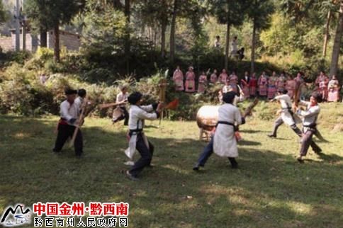 據(jù)普安縣志記載,“蒙灑”苗人是明末遷至普安,其“惹捱德亙”(蘆笙棒舞)起源于何時,均無文字可考,但從其傳說、表演形態(tài)和伴奏音樂看,苗族蘆笙棒舞是我國古代歌、舞、樂一體的藝術(shù)形態(tài)在苗族族群中的留存。
