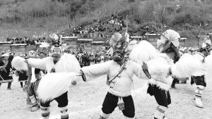 甘肅省隴南市文縣鐵樓藏族鄉(xiāng)村民們表演的國家級非遺項目池哥晝 孫文振攝