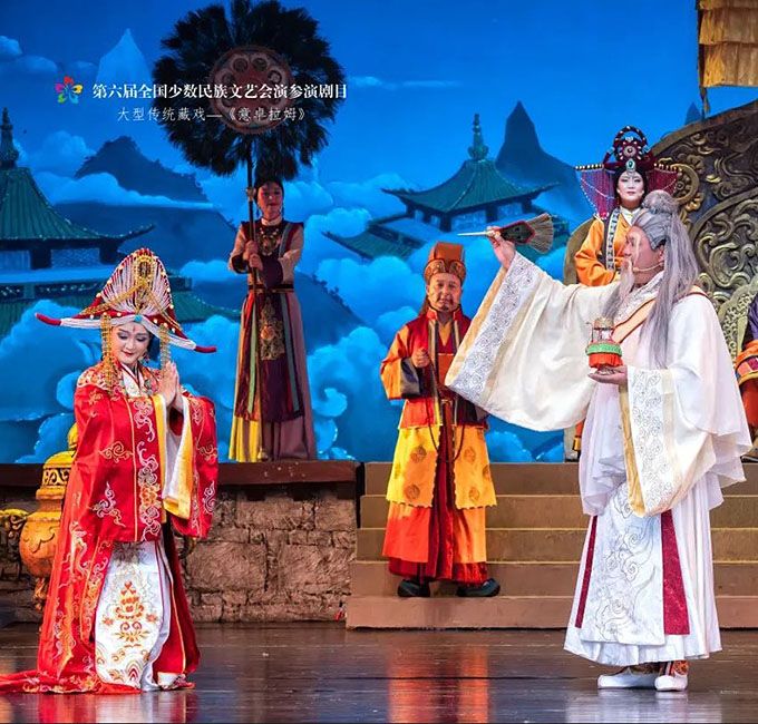 9月14日,作為第六屆全國少數(shù)民族文藝會演參演劇目,由青海省選送、青海省藏劇團(tuán)(黃南藏族自治州民族歌舞劇團(tuán))創(chuàng)作演出的藏戲《意卓拉姆》在央視網(wǎng)和國家民委門戶網(wǎng)站進(jìn)行演播。該劇講述了傳說中的仙女意卓拉姆與人間的諾桑王子相愛,歷經(jīng)挫折與磨難后終成眷屬的愛情故事,表現(xiàn)出意卓拉姆對愛情的忠貞不渝和諾桑王子堅(jiān)韌不拔的意志。