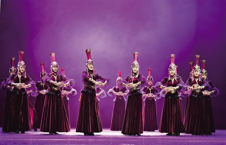 蒙古舞由民間走向劇場,始于1946年吳曉邦先生創(chuàng)作女子雙人舞《希望》和群舞《民族之路》。賈作光則將蒙古舞的發(fā)展推向高潮。深入草原,體驗游牧生活,賈作光不斷挖掘和整理傳統(tǒng)文化資源,蒙古族舞蹈經(jīng)典相繼問世——遼闊的草原上,一位身著傳統(tǒng)民族長服的女子頭頂疊碗,雙手持盅,英姿妖嬈款款起舞,動人的《盅碗舞》渲染出牧民迎來新生活的喜悅和歡樂;提煉宗教舞蹈精華,提取擠奶、射箭等生活動態(tài)元素,蒙古族干練灑脫的民族氣質(zhì)在《鄂爾多斯舞》中盡顯……