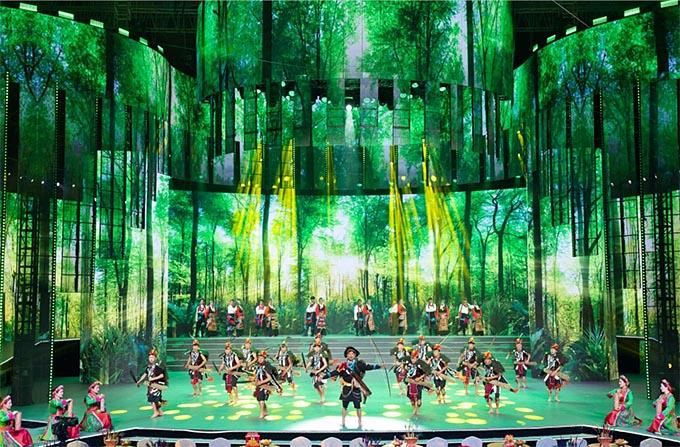 在舞美上,晚會傾力打造中華文化概念,突出鑄牢中華民族共同體意識,建構(gòu)熱烈祥和的觀演環(huán)境、身臨其境的現(xiàn)場體驗、自然流暢的互動場景,以更炫麗、更時尚、更具生命力的節(jié)目內(nèi)容和形式,為觀眾提供技術與藝術完美結(jié)合的視聽盛宴。主創(chuàng)人員別具匠心地把舞臺設計成一個具有民族特色的大客廳,寓意各族兄弟姐妹溫暖團聚,營造既有民族特色又有時代氣息的視覺空間。