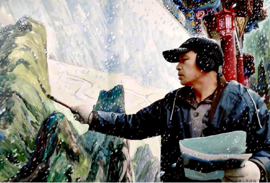 進士后裔陸華岳老師在蓮湖公園冒著嚴寒創(chuàng)作 (蘭天明攝影)