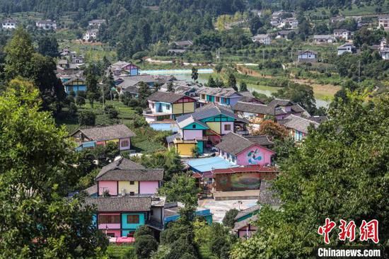 航拍貴州湄潭金花村“七彩部落”。 瞿宏倫 攝