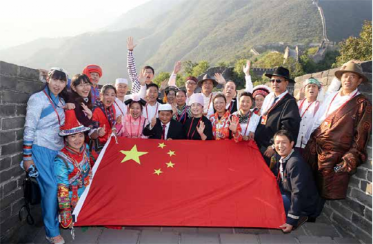 2017年全國少數(shù)民族參觀團的各族代表參觀慕田峪長城。(民族畫報記者 娘吉加 攝影)
