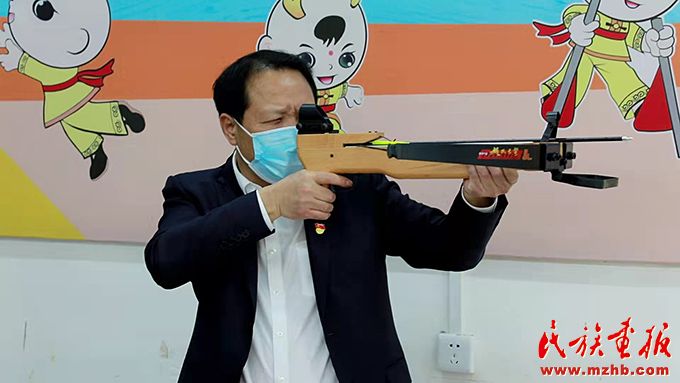 江華瑤族自治縣委書記段貴建體驗(yàn)射弩。