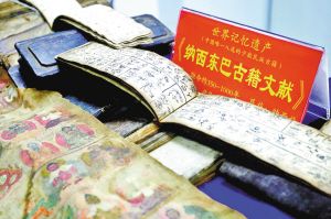 納西族東巴古籍文獻(xiàn)展示。 張彤?dāng)z