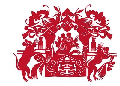 冬日的陽光透過玻璃窗,灑在老屋的炕上。幾位婦女在炕上鋪一塊布,對窗盤腿而坐,然后一手捏紅紙,一手拿剪刀,神情專注地剪“老鼠嫁女”。這是春節(jié)前在和林格爾縣河頭村看到的畫面。老鼠嫁女,也叫老鼠娶親,在傳統(tǒng)剪紙中有不同的版本。據(jù)了解,民俗剪紙“老鼠娶親”在清道光年間就開始流行了。欣賞和林格爾剪紙傳承人創(chuàng)作的“老鼠娶親” ,老鼠的形象多采用粗獷輪廓,又用細線條加以襯托,如老鼠胡子、花轎穗子、喜鵲羽毛、花紋等。河頭村的婦女剪窗花時,鼠是常表現(xiàn)的題材之一,被稱為“靈人”,如老鼠舔燈盞、老鼠偷瓜、老鼠吃葡萄、鼠咬天開等。幾十年前,段蓮女老人剪的老鼠靈活生動,富有動感,遠近聞名,她的 “吉祥鼠”剪紙技藝傳承至今。