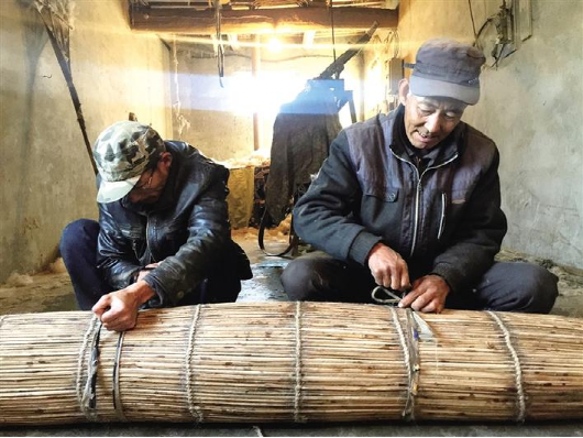 接著,父子幾人配合著,開始蹬簾子步驟。“搟簾子的步驟最關(guān)鍵。”杜海明說,蹬簾子的時候,蹬的時間長了不行,短了也不行,要掌握好時間,才能達(dá)到最好的效果?!澳亩夹枰?xì)化,稍不精細(xì)就會出現(xiàn)氈散了、爛了,做不成功就廢了。”說著,杜占財和杜占福在杜海明的帶領(lǐng)下,三人用雙腳,來來回回仔細(xì)地進(jìn)行著搟簾子。