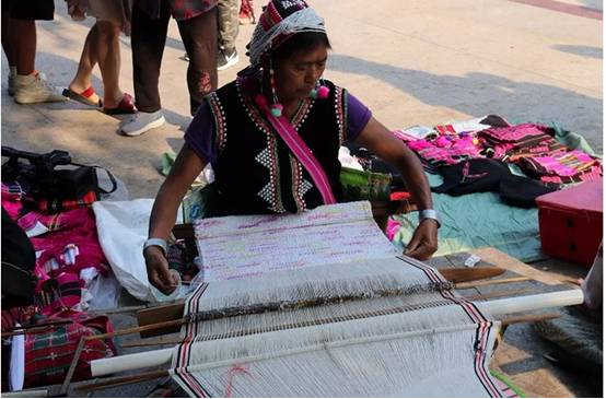 織錦是各民族生活中不可缺的勞作。紡線原料以棉纖維和麻纖維為主。 棉主要是草棉、白棉沙線、黑棉沙線、紅棉沙線,麻主要為苧麻和野生火麻。在織錦的過程中,婦女端坐在紡車前,凝神專注地操持著手中的活計(jì)。 織一匹布大約需要20天至一個(gè)月左右的時(shí)間。
