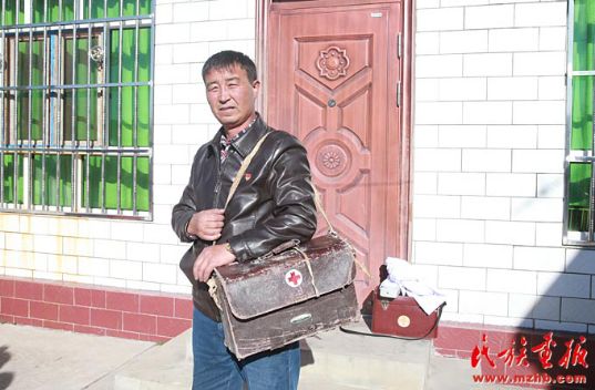 一只老式的皮藥箱、一匹馬、一個(gè)裝滿藥的馬褡子、一件綁在馬鞍后的皮大衣,見(jiàn)證了居馬泰·俄白克的牧區(qū)醫(yī)生生活,他那風(fēng)塵仆仆的身影在包扎墩牧區(qū)已經(jīng)成為牧民們眼中最美的身影。