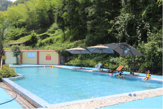 大人們?cè)谇嗌骄G水間泡溫泉、賞風(fēng)景,孩子們?cè)趦和蠘穲@嬉戲玩鬧,中晚飯點(diǎn)時(shí)在農(nóng)家樂里吃著當(dāng)?shù)亓魉B(yǎng)殖的生態(tài)魚,體驗(yàn)著鄉(xiāng)村風(fēng)情,舒適愜意遍布全身。