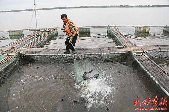 在黑龍江畔,通過網(wǎng)箱養(yǎng)魚做到既保證群眾的收入,又保護(hù)好黑龍江的魚類資源。