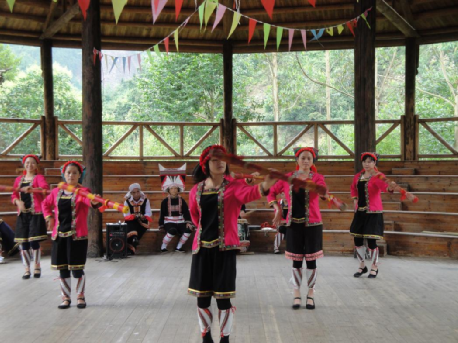 必背口瑤族新村村民跳著瑤族舞蹈(王鐵志攝)