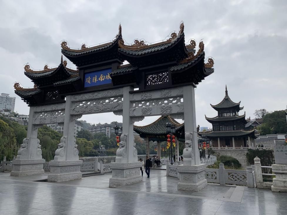甲秀樓景區(qū)從廣場牌坊由北向南,分為三個(gè)部分: