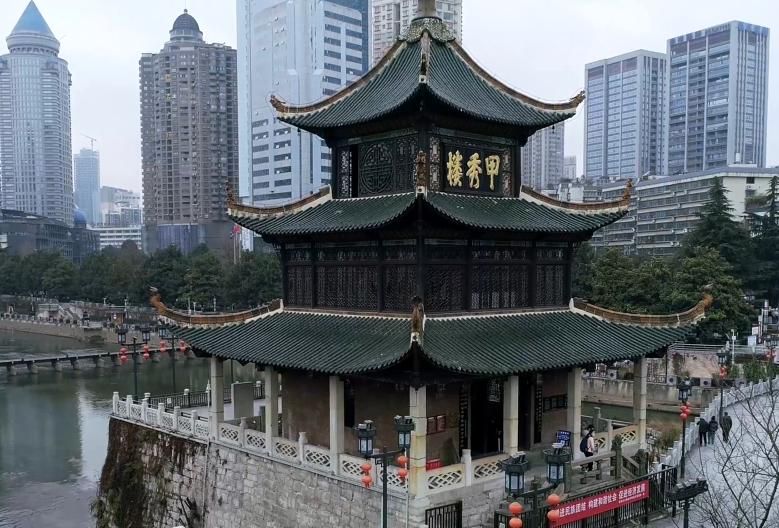 屹立在南明河上的甲秀樓,是繁鬧市區(qū)中不可多得的清幽之地,景區(qū)內(nèi)古色古香,景區(qū)外高樓林立,在現(xiàn)代文明中閃爍著歷史的光芒,昂揚(yáng)著“甲秀天下”的城市精神風(fēng)貌。