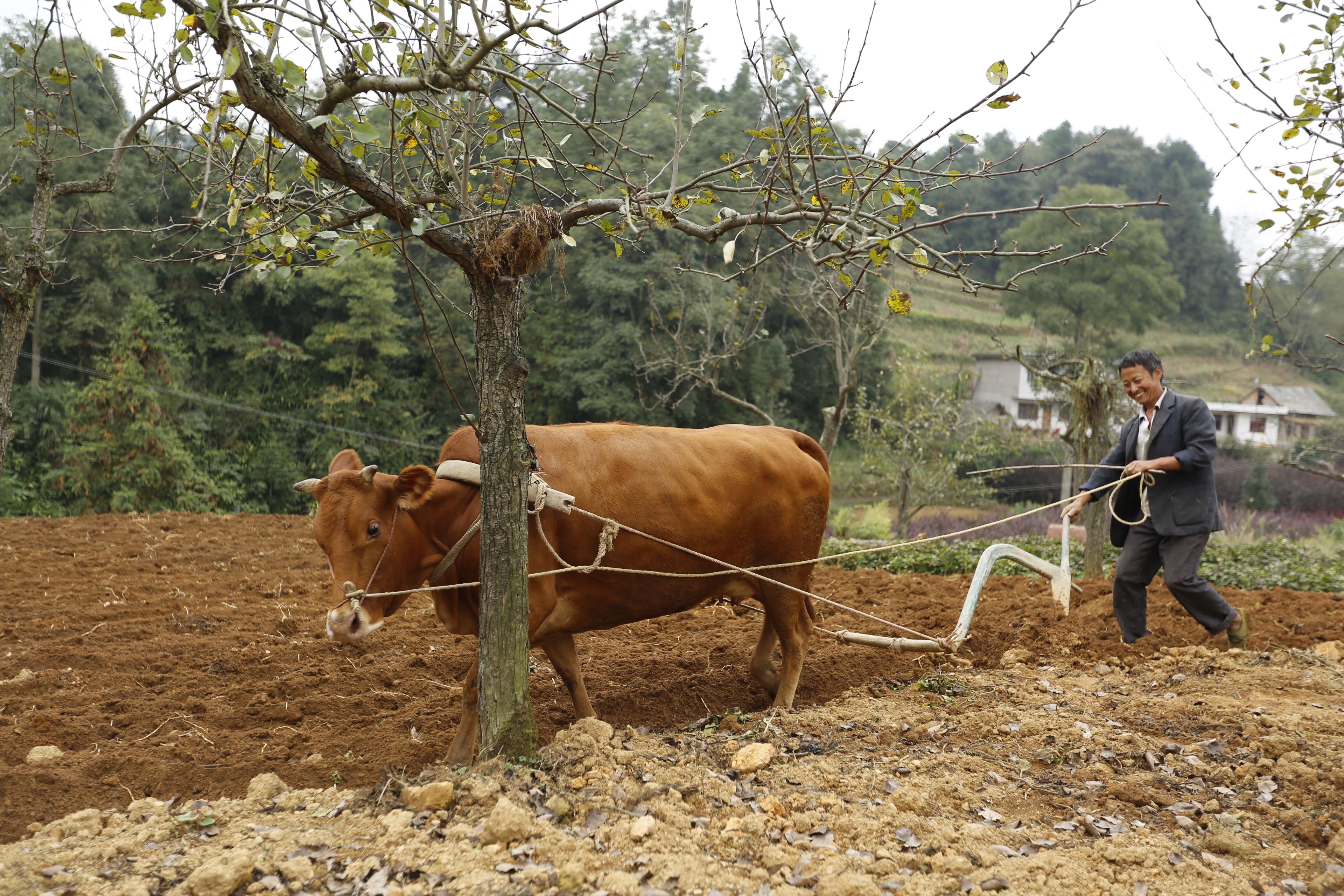 貴州貴陽苗族農(nóng)作物種植-牛耕田