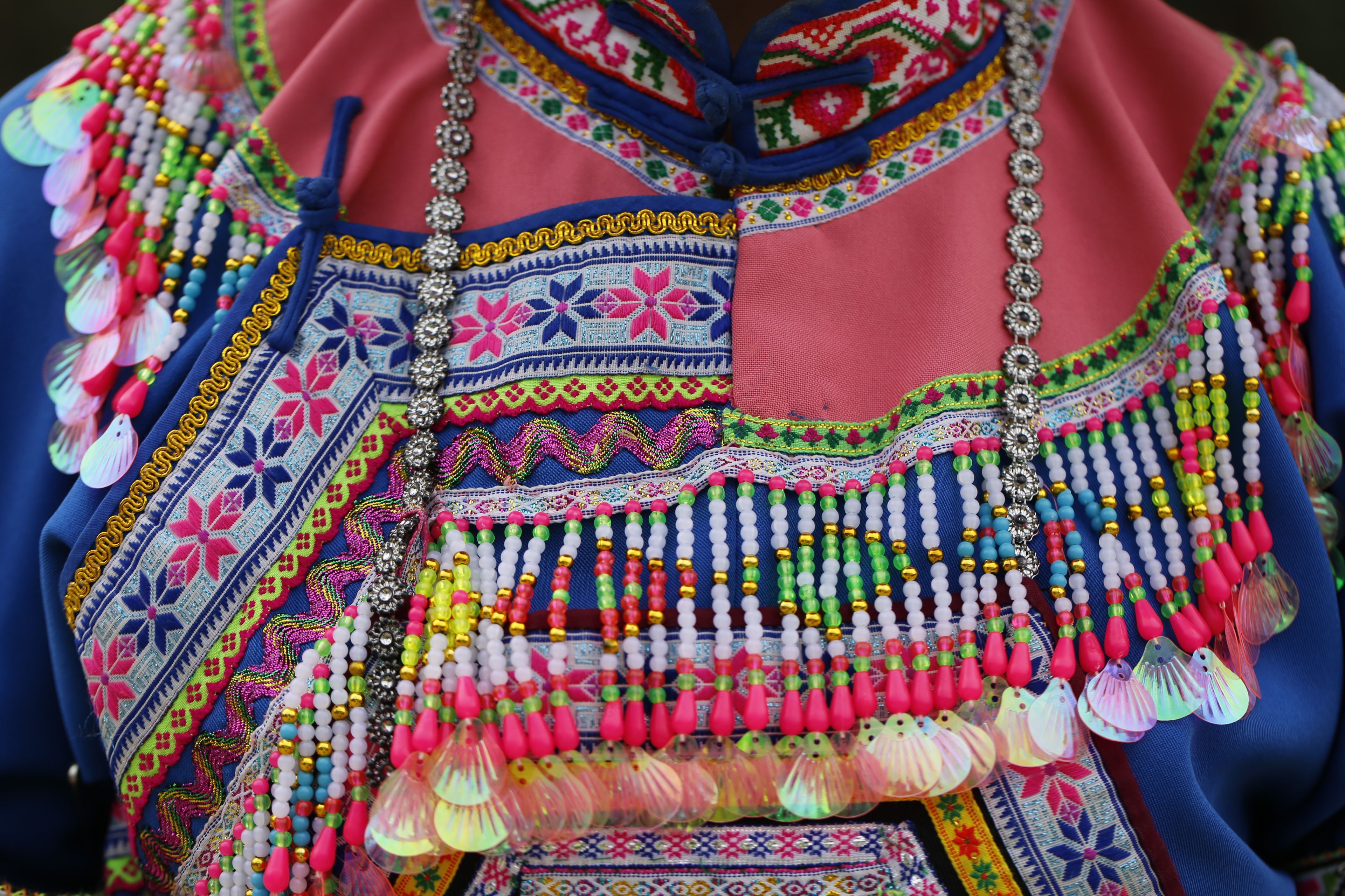 圖片說明:貴州貴陽(yáng)苗族女子對(duì)襟刺繡上衣
