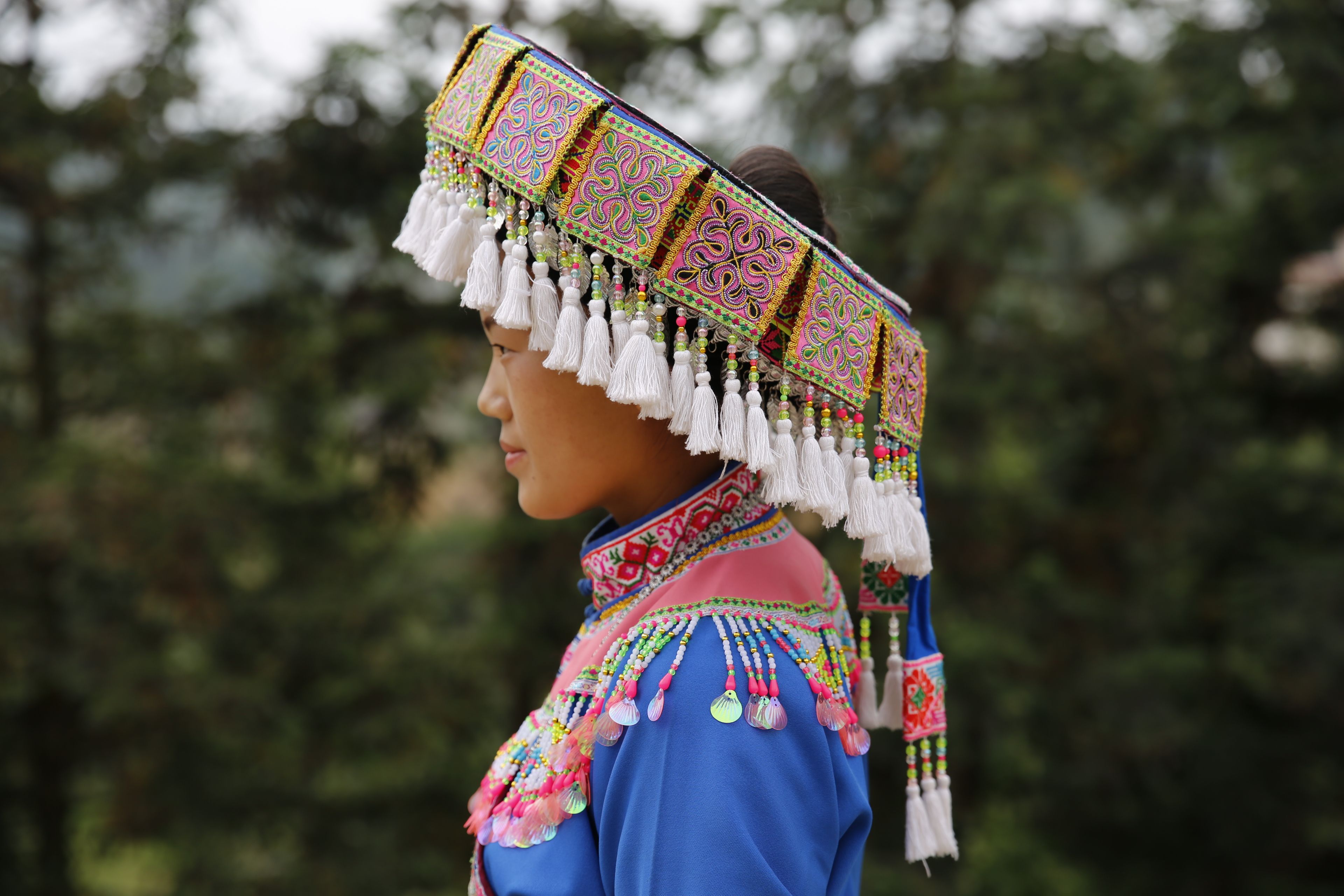 苗族女子服飾花帽-側(cè)面繡花及裝飾2