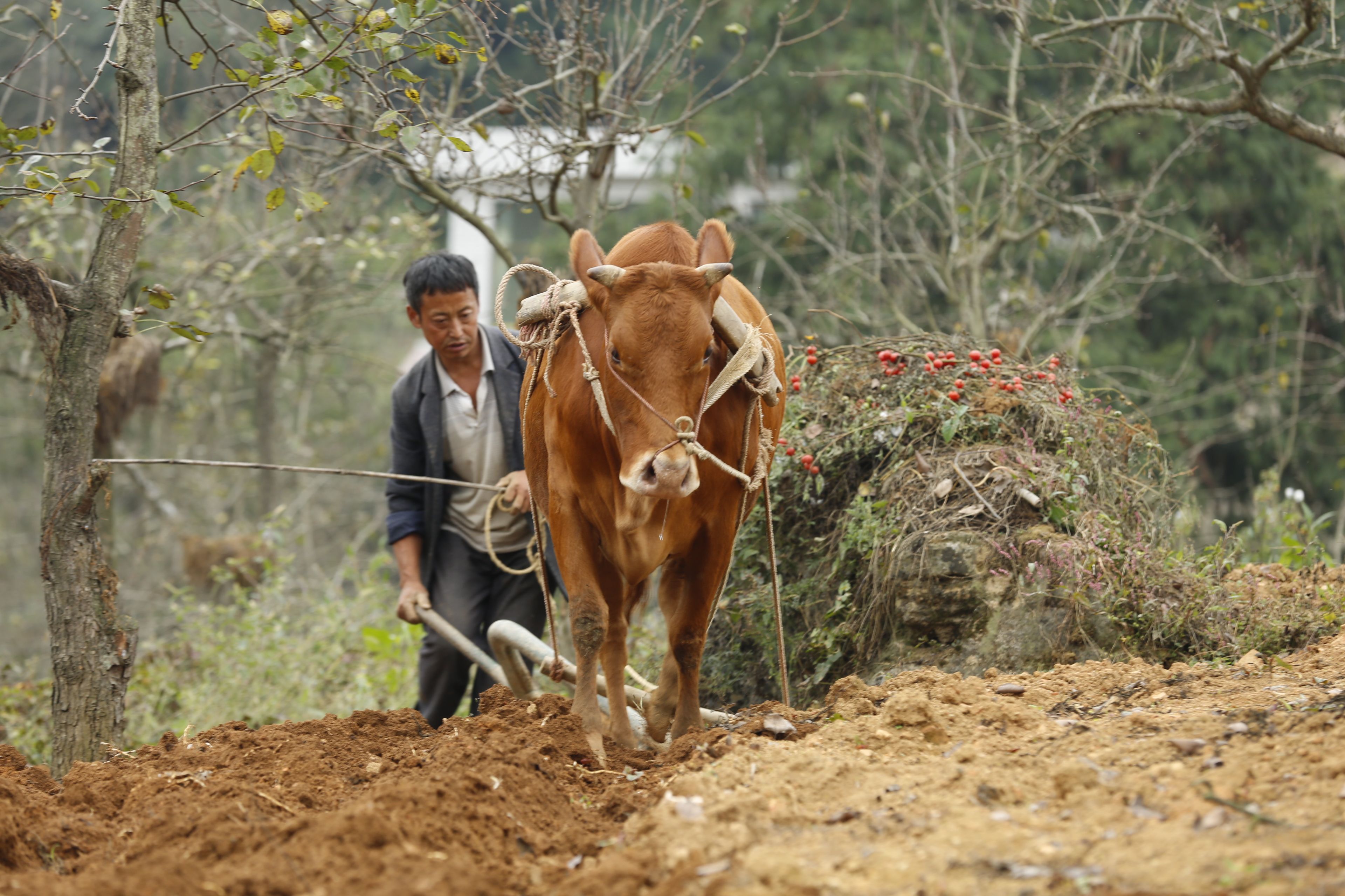 圖片說明:貴州貴陽苗族農(nóng)作物種植-牛耕田